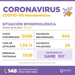 En la previa del comienzo de la fase más estricta, la curva no deja de ascender en Quilmes y de esta manera, los casos confirmados ascendían a los 2204, en total, según el último parte informado.
