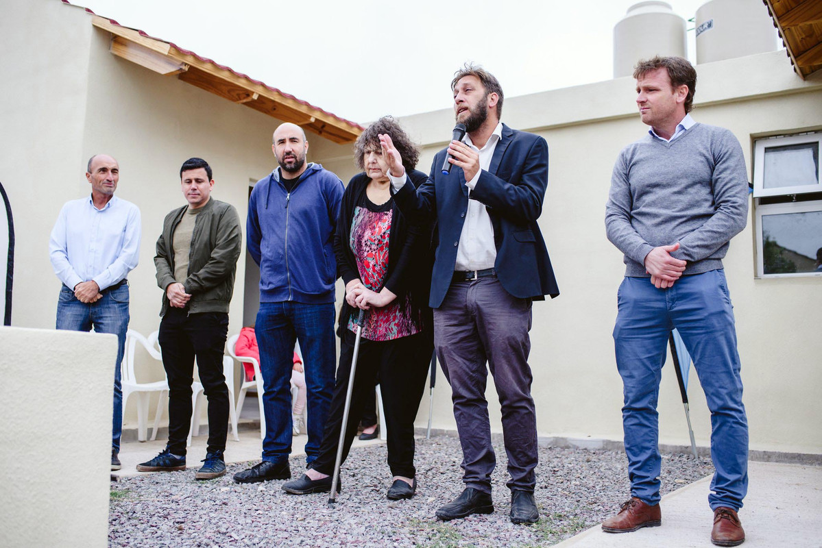 Fueron construidas a través del Instituto de la Vivienda y la Asociación Educadores local. La obra comenzó en 2001 y fue abandonada cuando le restaban completar 21 casas. Los trabajos habían sido reactivados pero volvieron a paralizarse en el gobierno de Vidal. En 2022 retomaron las tareas y ya finalizaron 6 unidades. "No puede volver a pasar tanto tiempo", dijeron desde Provincia. El Intendente Galli no estuvo en el acto.