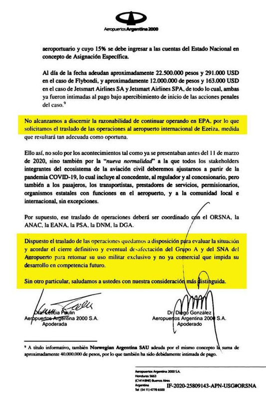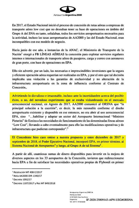 En el texto, los representantes de la firma que administra los aeropuertos reparten culpas, y miran principalmente a la gestión anterior, encabezada por el exministro Guillermo Dietrich. "El intento del Estado Nacional por desarrollar el modelo low cost en nuestro país tuvo facetas errática y un accionar improvisado", disparan en el escrito.