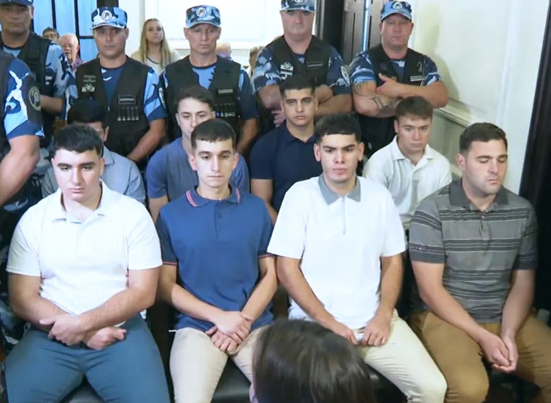 Se trata de Máximo Thomsen (23), Enzo Comelli (22), Matías Benicelli (23), Blas Cinalli (21), Ayrton Viollaz (23), y Luciano (21), Ciro (22) y Lucas Pertossi (23), quienes volvieron a estar presentes en la audiencia de este lunes, al igual que lo hicieron en las otras cinco jornadas desde la apertura del debate oral.