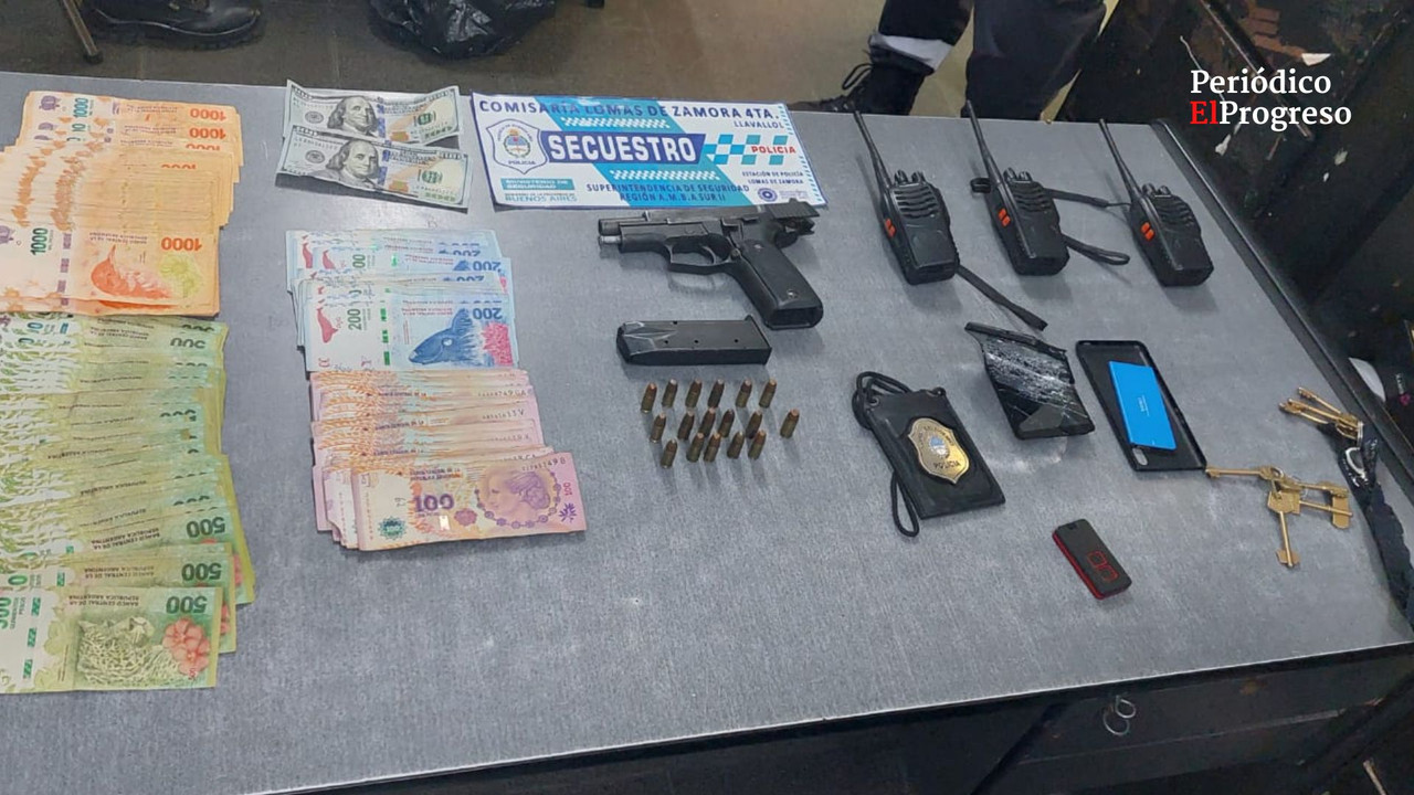 Los detenidos, de 50 y 39 años, habían dejado a bordo del vehículo una bolsa con el dinero del rescate, tres celulares, misma cantidad de handies, una pistola con municiones, y un chaleco antibalas y una chapa sin número con las inscripciones "Policía de la Provincia de Buenos Aires".